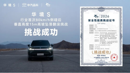此次“极限挑战”中,华境S直面真实道路中仅占10%却造成90%致命伤亡的绝境,这也是行业首次有车型公开挑战该复合测试,华境S最终完美实现“全员生存、无次生风险、救援通道畅通”的安全目标,故华境S也因此以全维度达标成绩斩获中汽品科TOP Safety认证,收获权威背书!