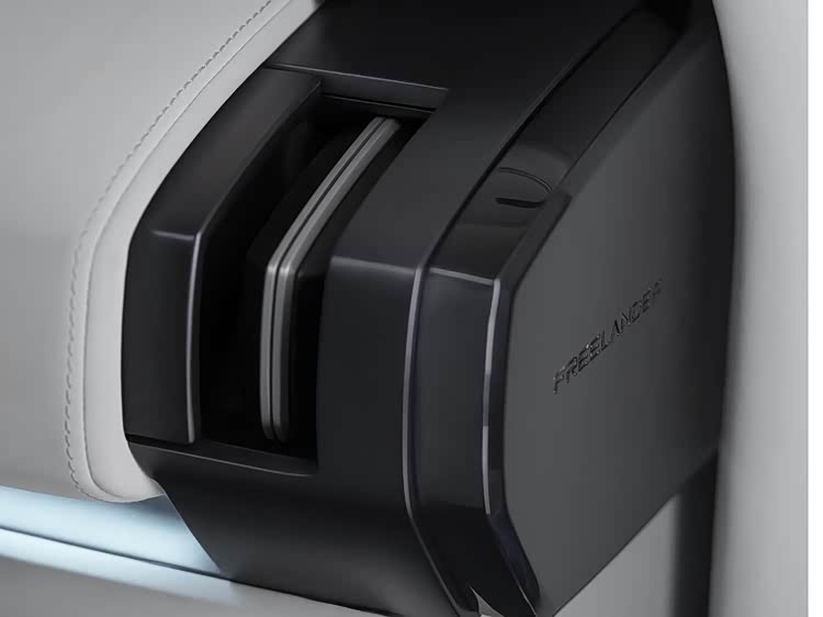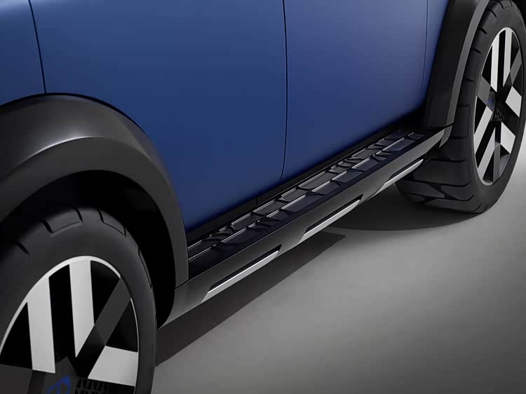 灯组下方引出了巨大的黑色区域,但似乎没有隐藏太多的内容,只是黑色面板用来装饰,延续了抽象的思路。车身侧面,该车感觉是想复古一些神行车型标志性的设计。但特殊的CD柱造型,又看不出什么名堂,对开门设计当然是概念车专属,不会得到量产,轮毂造型倒是相当个性,与侧裙处的银色装饰形成呼应,镀色车漆增强了时尚感、车尾部分则是和车头对应的大面积银色装饰,中间是巨大的FREELANDER字母车标,生怕别人看不出该车的身份。