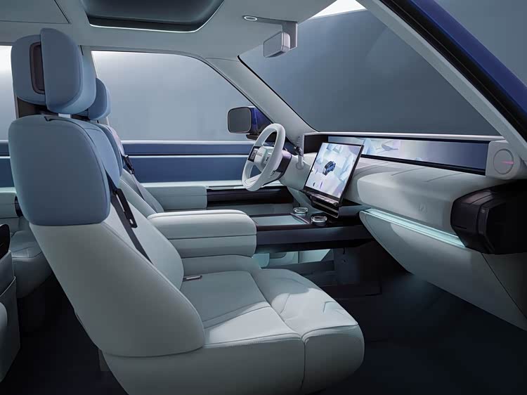 车顶扰流板不会缺席,尾灯两段式的红色结构镶嵌于黑色面板之上,与车头形成呼应,让整车的风格形成统一。内饰部分,一眼望去除了概念车元素之外,最明显的就是天际屏加悬浮式设计,而且似乎不是小米和宝马那种P-hud,而是林肯、长安的风格,科技含量似乎更低一些,无法给消费者带来新奇感,反而需要时间去适应,突出的平台面板,占用了一定的空间,当然也可以用来写作业,散射式气氛灯带也不会缺席,从概念车座椅的突出设计来看,应该未来实车会有着丰富的可连接选项,吸顶娱乐屏不会缺席,电冰箱有望得到实装。