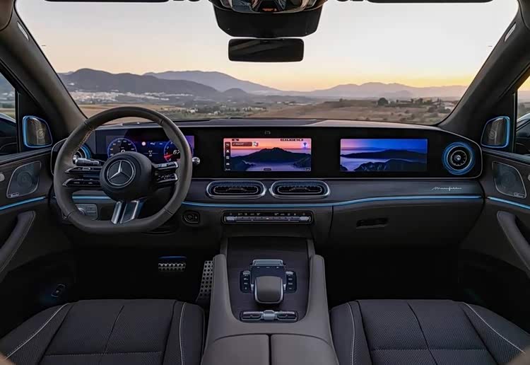 内饰部分,新款GLE核心变化为搭载MBUX Superscreen超联屏,12.3英寸仪表+14英寸中控+14英寸副驾屏的组合,大幅提升科技氛围。空调出风口改为圆形,方向盘优化,保留实体按键与音量滚轮,盲操更便捷。座椅采用全新纹理材质,配备缝线与按摩功能,高配车型有后排独立娱乐、多色氛围灯,豪华与舒适性升级,车内大面积软质包裹搭配木纹/金属饰板,延续奔驰精湛做工。
