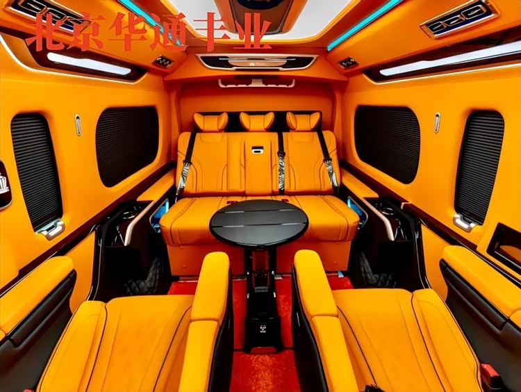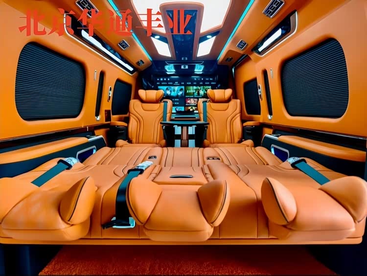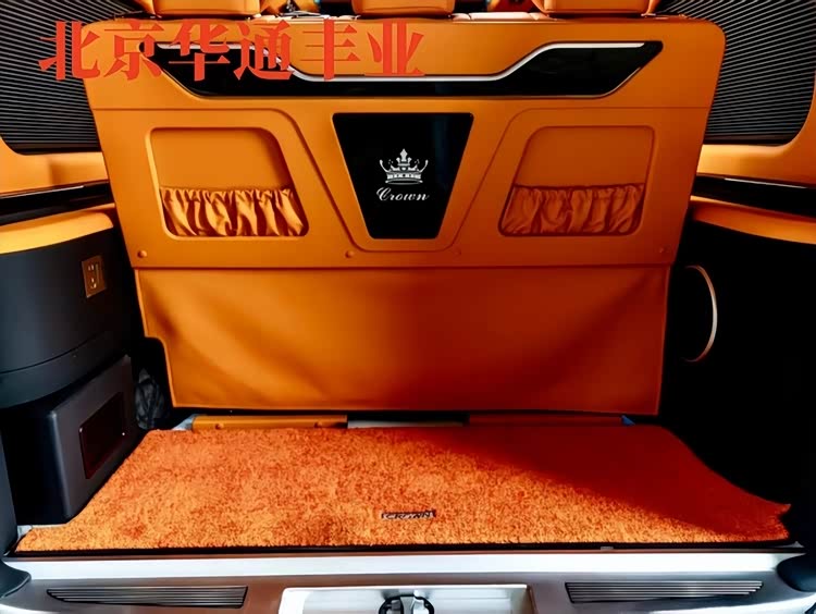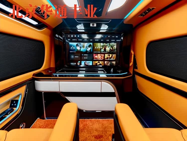 舒适与娱乐配置诚意拉满:中高配车型配备Alcantara麂皮车顶、32色可调氛围灯与星空顶,夜晚点亮如置身豪华游艇;游艇级柚木地板防滑耐磨,质感媲美百万级车型;后排配备15.6-48英寸4K吸顶屏,支持蓝光播放、HDMI接入与手机投屏,搭配JBL 16-18扬声器高级环绕音响系统,经车内声学环境专属调校,高速120km/h行驶时车内噪音仅58分贝,仍能享受Hi-Fi级音质体验。此外,全车标配220V/1500W逆变器、6个USB-C快充接口与2个15W无线充电板,可同时满足多设备供电需求;18L双温区车载冰箱(-20℃至10℃可调),可冰镇饮品或保鲜食材,细节处尽显贴心。