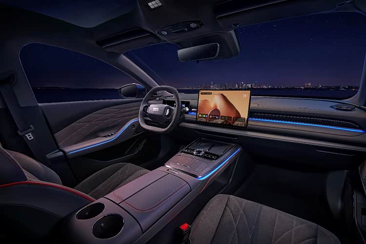 内饰提供檀木棕、曜石灰两款经典配色,新增星河灰·Autosoft®️超纤绒麂皮定制内饰,材质细腻透气,具备防水、耐磨抗污特性。新车配备VIP电动行政座椅,座垫长度536mm,支持100mm滑动和131°靠背调节,配备加热、通风及按摩功能。前排副驾可180°放平,与后排座椅形成一体式沙发床。座舱内搭载23扬声器Flyme Sound音响系统,采用7.1.4全景声布局。