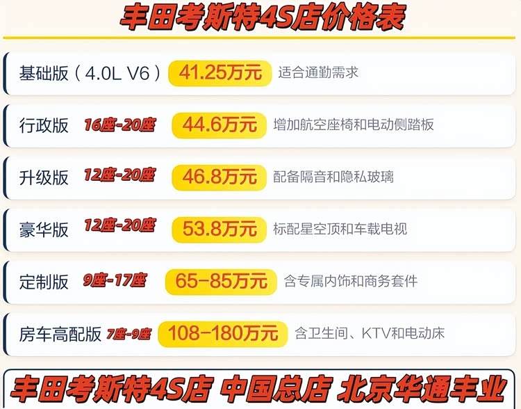 2026款丰田考斯特4S店总部 北京华通丰业汽车总店手续齐全当天开票全国上牌!丰田考斯特总部销售考斯特(6座/7座/8座/9座/10座/11座/12座/13座/14座/15座/16座/17座/18座/19座/20座/21座/22座/23座),透明公开的出厂报价让您购车无忧,改装工厂直营店,五年十二万公里质保。