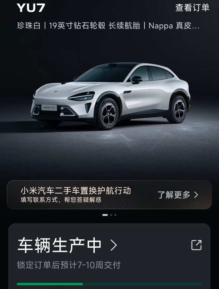 我朋友昨天下定的YU7,交付周期需要7-10周,这意味着小米手上还是有着不小的订单量,等四月YU7产能回来,小米汽车的销量又该起飞了吧?
