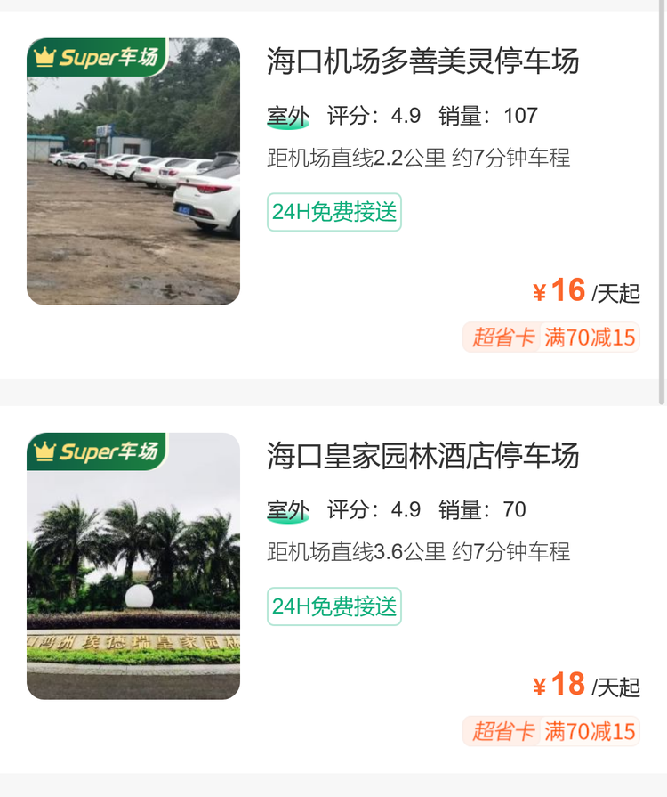 这些停车场的收费在15到18左右一天,相比机场还是非常有吸引力,特别是在停车时间较长的时候,具体的收费以及停车场的环境,可以用淘车位小程序来查看,还支持直接在线上预订。