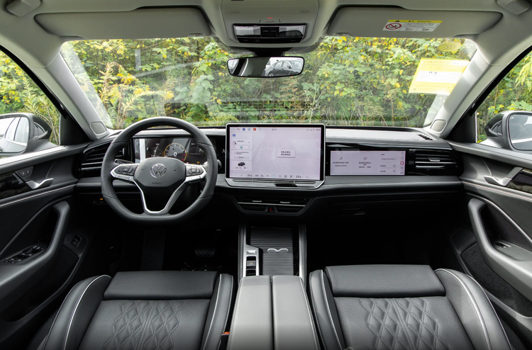 大众迈腾35周年严选款内饰同样没有变化,跟现款迈腾B9基本保持一致,全液晶仪表的尺寸为10.25英寸,中控屏幕的尺寸为15英寸,车机芯片为高通骁龙8155,配置方面,35周年严选款相比尊贵版配置多了360°全景影像,电动后尾门,尾门记忆,副驾驶屏幕,3个车外摄像头。
