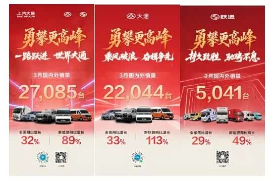 以3月销量新高、一季度稳健增长为新起点,上汽大通将继续锚定“全球轻型商用车领导者”战略愿景,持续深化新能源转型与全球化布局,以更优质的产品与服务深耕全球市场,引领轻型商用车行业迈向绿色、智能、全球化的高质量发展新阶段。