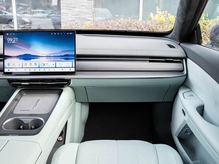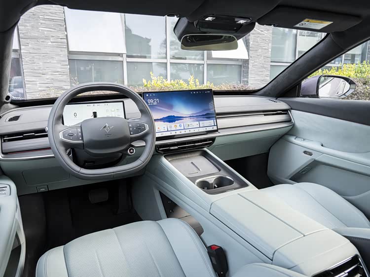进入车内,奕派007闪现版提供了两种内饰配色选择:限定的星环雾蓝和常规的星际曜黑。中控区域配备了一块15.6英寸的屏幕,分辨率达到2.5K级别,仪表盘则是10.25英寸。