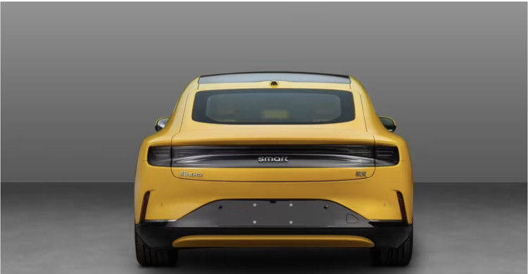侧面是典型的掀背轿跑轮廓,车顶线条从B柱开始缓缓下滑,一直延伸到车尾,没有传统三厢车那种明显的后备厢分割感。门把手是隐藏式的,和车身齐平。尺寸方面,长宽高4906×1922×1508mm,轴距2926mm,车长接近4米9,宽度超过1米9,确实配得上“史上最大smart”这个称号。