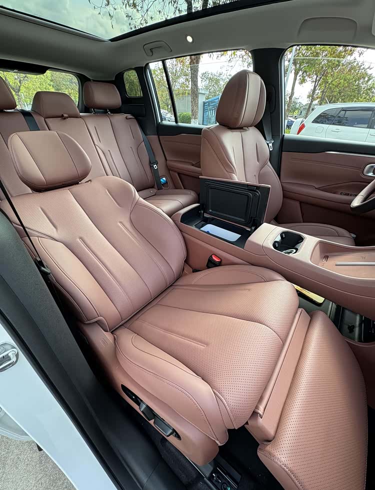 同时提供柔光舞白、焦糖暖绒、晨雾冷灰3种风格,并配备双幅式多功能方向盘+电子怀挡、镂空副仪表台+50W手机无线快充、氛围灯等。另一亮点当属带电动腿托的副驾零重力座椅,再配合扶手箱内的智能冷暖冰箱以及大尺寸流光美妆镜,妥妥的“女王级待遇”。