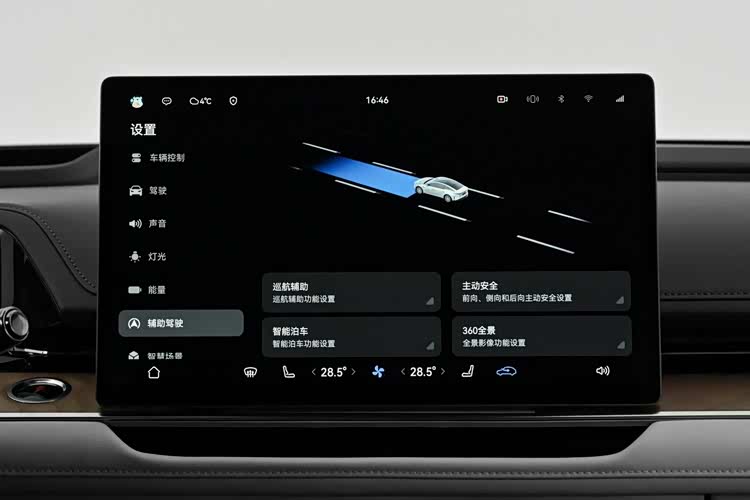 然后如今大家买车都很在意的辅助驾驶部分,丰田铂智7按照车型版本不同,提供了两种辅助驾驶系统可选,分别为入门款车型的Toyota Pilot辅助驾驶系统,支持L2级辅助驾驶功能,以及Momenta R6飞轮大模型高阶辅助驾驶系统,全车集成27个传感器,其中包含一颗激光雷达,搭配一体融合式端到端大模型,高速、城市全场景高阶辅助驾驶都能覆盖。
