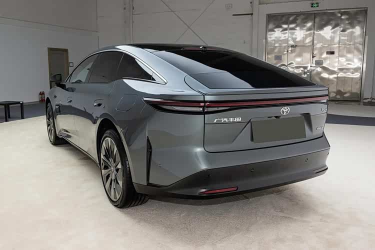 侧面来看,丰田铂智7也采用了很大胆个性的设计,修长的车身搭配上溜背姿态,再加上收窄的腰部设计,以及半隐藏式门把手、低风阻轮圈等元素加持,有着很出色的运动时尚感。尺寸方面,丰田铂智7长宽高分别为5130/1965/1506mm,轴距为3020mm,个头略大于比亚迪汉,结合其五座布局,以及平整宽敞的后备厢,空间表现无需担心。
