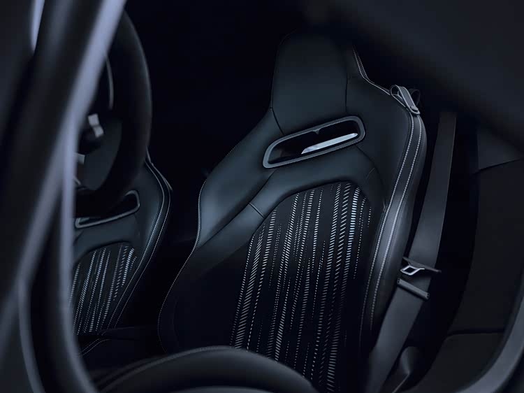 进入车内,MCPURA在内饰层面并未进行结构性变化,但对关键部件进行了调整。新样式方向盘采用平顶设计,在高速驾驶时可减少视线遮挡,同时提升转向操作空间。材质方面提供Alcantara与碳纤维两种选择,其中方向盘上下区域由碳纤维替代部分软性材质,使触感更偏向性能取向。仪表台与车门上部同样使用Alcantara覆盖,减少反光的同时增强摩擦力,有助于驾驶时稳定身体姿态。