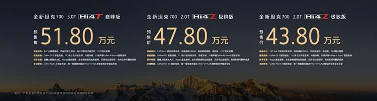 首先要谈的,自然是那个最敏感的数字:43.80万起。如果说坦克300是打破了外资对硬派越野的入门垄断,坦克500是击穿了30万级豪华越野的天花板,那么坦克700这次的定价,本质上是将战火烧到了传统豪华品牌的核心腹地——40万-50万级市场。