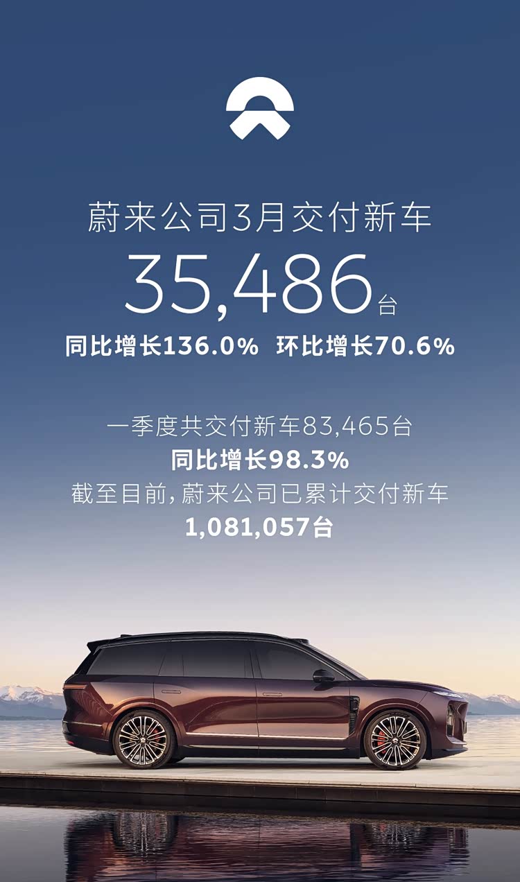 日前,我们从蔚来汽车官方获悉,蔚来汽车在3月份完成新车交付35,486台,相比去年同期实现136.0%的增长,同时环比提升70.6%。这一数据变化反映出企业在季度末阶段的交付节奏明显加快,产销协同效率有所提升。从实际用车场景来看,交付量提升通常与产能爬坡、供应链稳定性以及订单转化效率直接相关,尤其在新能源市场竞争加剧背景下,月度交付波动更能体现企业运营状态。