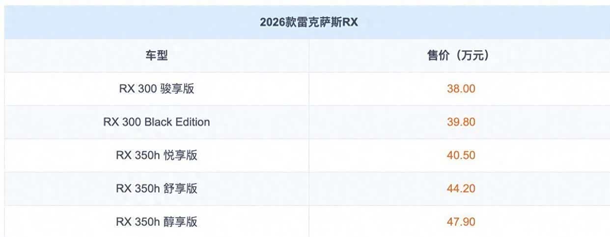 产品迭代节奏暗合市场周期。 2026款上市时间卡在9月恰逢金九银十销售旺季又避开7月国六b政策实施前的价格战。 这种精准卡点让RX在第三季度豪华SUV销量榜稳居前五成为少数正增长的燃油车型。
