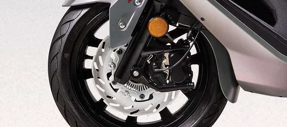 再加上前对四卡钳+博世ABS系统、后中置减震、可调节双段座椅、前14后13英寸的轮圈组合等等,整体操控和舒适性完全不用担心。