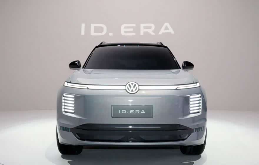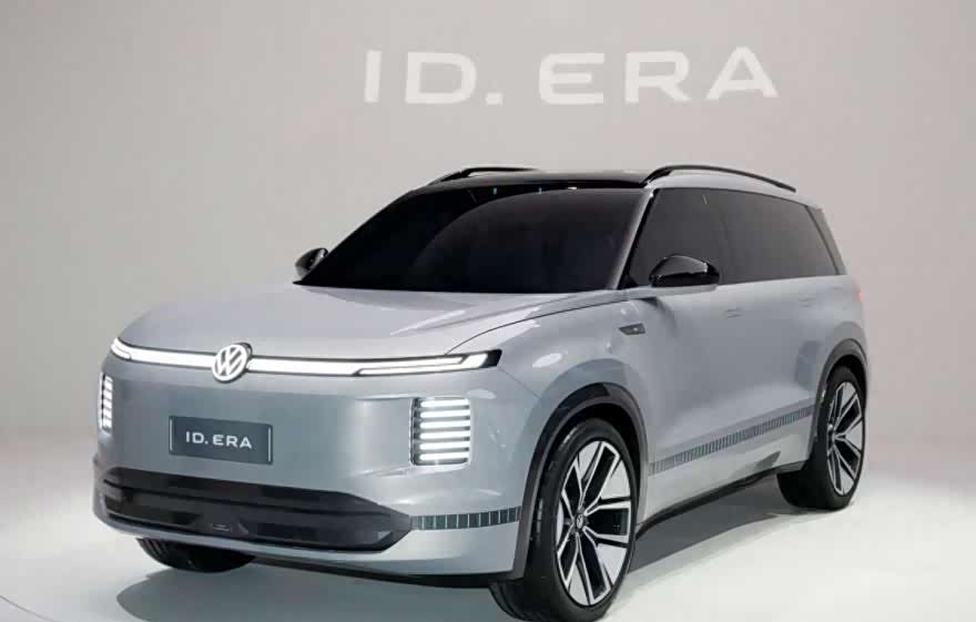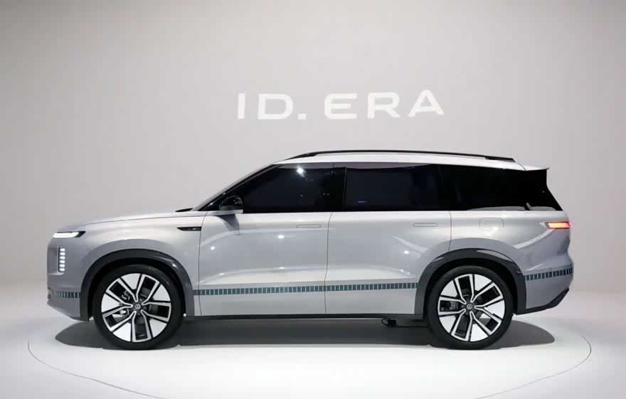 定位与技术亮点: 作为大众品牌首款增程式电动概念车,ID.ERA的登场颇具突破意义。它采用封闭式前脸与贯穿式LED灯带设计,搭配发光LOGO和独特的矩形日行灯,视觉辨识度极高。其宽大的车身线条预示着它是一款全尺寸大型SUV,悬浮式车顶设计更添动感。