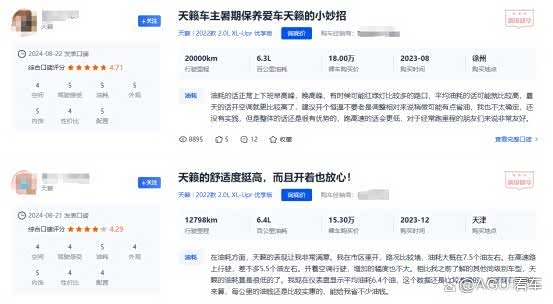 此外,根据老车主的反馈,天籁2.0L版本车型的综合油耗可低至6.4L左右,也是属于经济性较为出色的车型。换而言之就刚需性,2024款 天籁(参数|询价)真心版是一款很好用的车型。