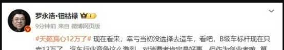 近期不少车型上市,并且还都祭出非常劲爆的限时起售价,比如2024款天籁真心版,“限时12.78万元”登上热搜,引起全网热议,其中罗永浩这样吐槽道:B级车标杆现在只卖12万了。汽车行业竞争这么激烈,对消费者肯定是好事。