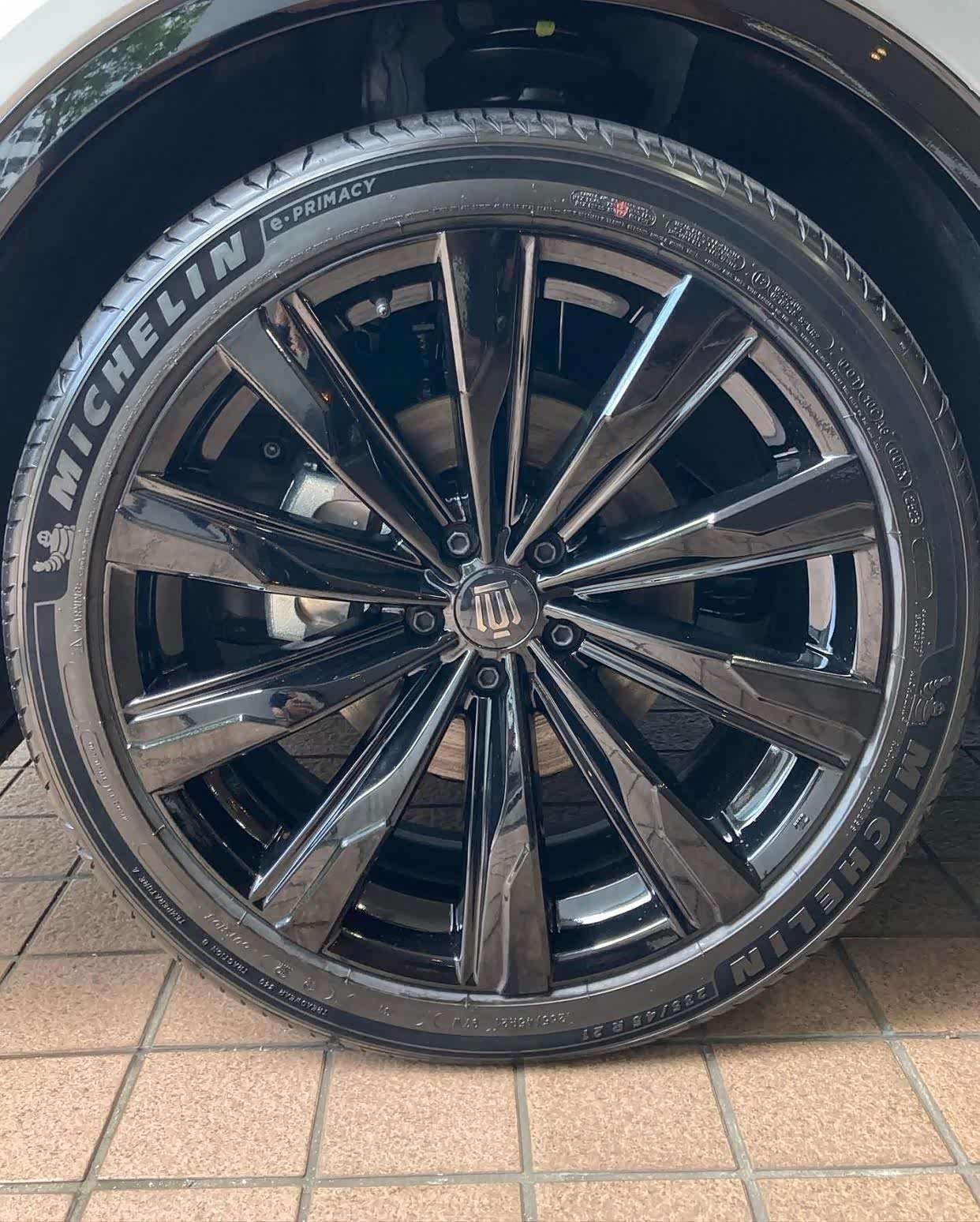 车身侧面,新车看起来还是比较紧凑的,一条圆润的腰线贯穿前后,前后轮眉以及侧裙处均进行了黑化处理,加上下方21英寸的大尺寸多幅式轮圈,搭配溜背式车身线条,营造出了极强的运动效果,而且整体造型与法拉利Purosangue颇为相似。车身尺寸方面,新车为4710*1880*1560mm,轴距2770mm。