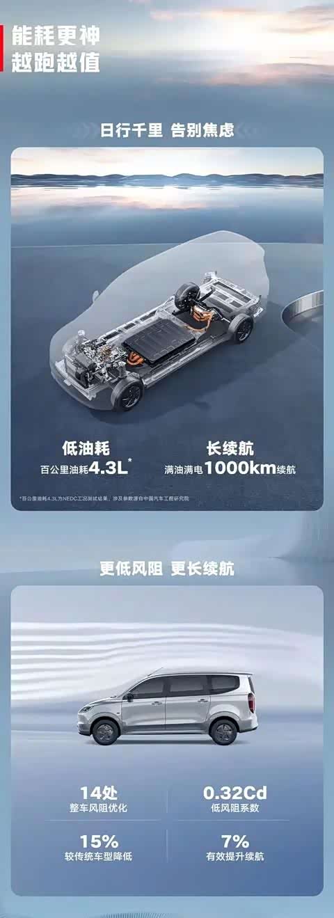 最吸引人的还是百公里油耗仅4.3L!计算下来,每公里成本仅0.33-0.4元,比许多纯电车还要经济实惠。不得不说,五菱这次真的是洞悉了老百姓的需求与心理。