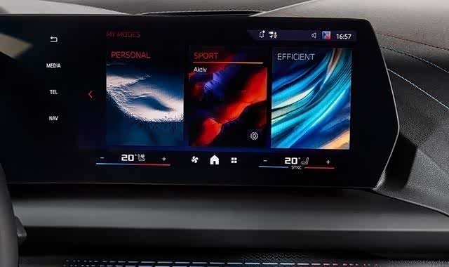坐进驾驶舱,我第一反应是:“我的物理按键呢?” 全新1系直接上了10.25英寸+10.7英寸双联屏,iDrive 9系统+QuickSelect功能一个不少。整个中控台干干净净,除了电子挡杆和几个触控按钮,几乎全是屏幕操作。