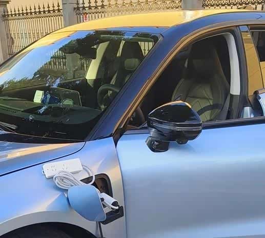使用此功能前,需备好放电枪及所需物品。打开车头左前叶子板处的慢充接口,将放电枪插入,并在车内中控大屏上操作,选择对外设备供电选项。若放电枪线不够长,车主可另购延长线以确保设备连接正常。