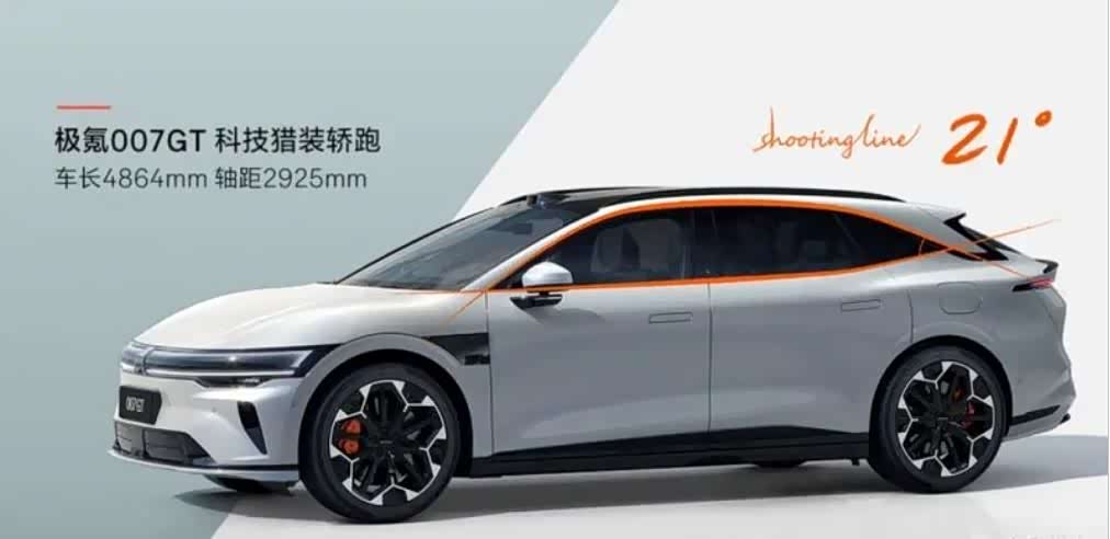 车身侧面,那两条极氪特有的猎装线,形成了21度的黄金夹角,这个设计真的是恰到好处。夹角大了,车就显得笨重;夹角小了,又失去了流线型的美感。而极氪007GT的这个夹角,既保证了车辆的姿态美,又降低了能耗,同时还提供了宽敞的车内空间,真的是一举多得。