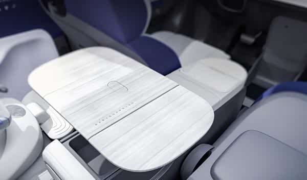 右后电滑门上的屏幕不仅可调节风量、音量,还能轻松切歌。此外,它还可以移动前排中央扶手,形成一个多功能魔方茶几,供您打牌娱乐、放置杂物,甚至进行梳妆打扮。该座舱还配备了隐藏式挂钩、后排隐私帘以及无棱角内饰等人性化设计,让整体实用性更上一层楼。