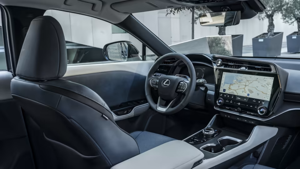 RZ450e Sports Luxury在RZ450e Luxury的基础上增加了20英寸轮圈、带转向功能的自适应LED大灯、自动泊车、全景天窗、智能卡片钥匙、13扬声器Mark Levinson高级音响、抬头显示器、Ultrasuede座椅、前排座椅通风、方向盘加热、主驾座椅记忆、双色车身选装等。