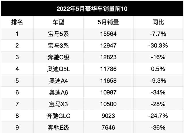 从5月豪华车销量排行中不难发现,BBA依然是绝对的一线品牌,宝马处于第一梯队,奔驰、奥迪紧随其后。