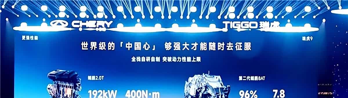 这次的瑞虎9X,搭载的就是奇瑞自研的2.0T涡轮增压发动机,最大能输出187千瓦的功率和390牛·米的扭矩,匹配的是一台8速自动变速箱。