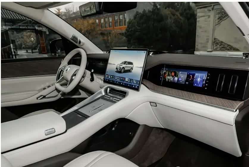 内饰方面,腾势N9也是诚意满满。17.3英寸的悬浮式中控屏,配上13.2英寸的全液晶仪表盘和副驾娱乐屏,这配置,简直就像是把电影院搬进了车里。坐在车里,就像坐在未来世界里一样,科技感爆棚。