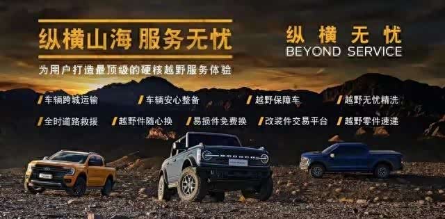 为了让用户能够更加专注在越野玩乐上面,福特纵横将提供更加贴心创新增值的售后服务。越野无忧精洗、车辆跨城运输、越野保障车、车辆安心整备、全时道路救援、越野件随心换、易损件免费换、改装件交易平台、越野零件速递等。尤其值得一说的是“越野件随心换”和“易损件免费换”能让车主享受到更经济实惠的越野服务。