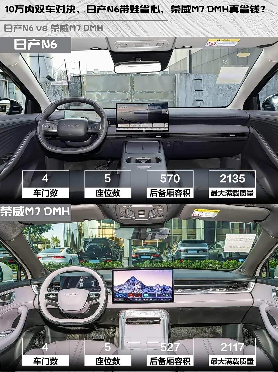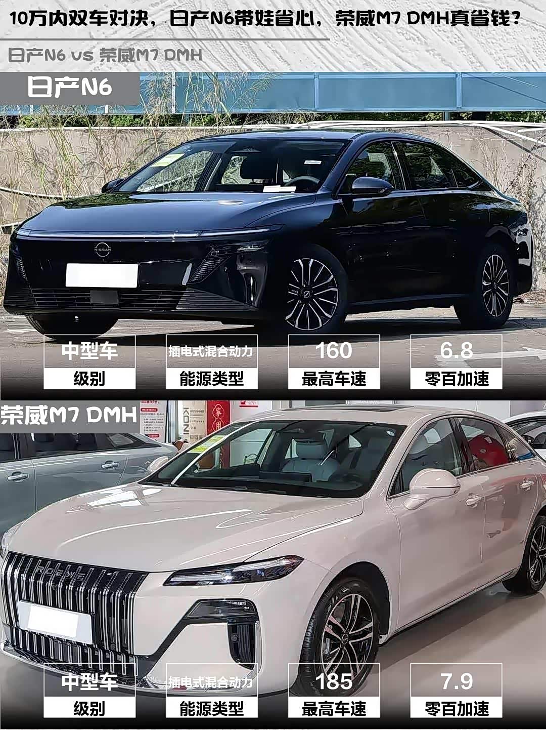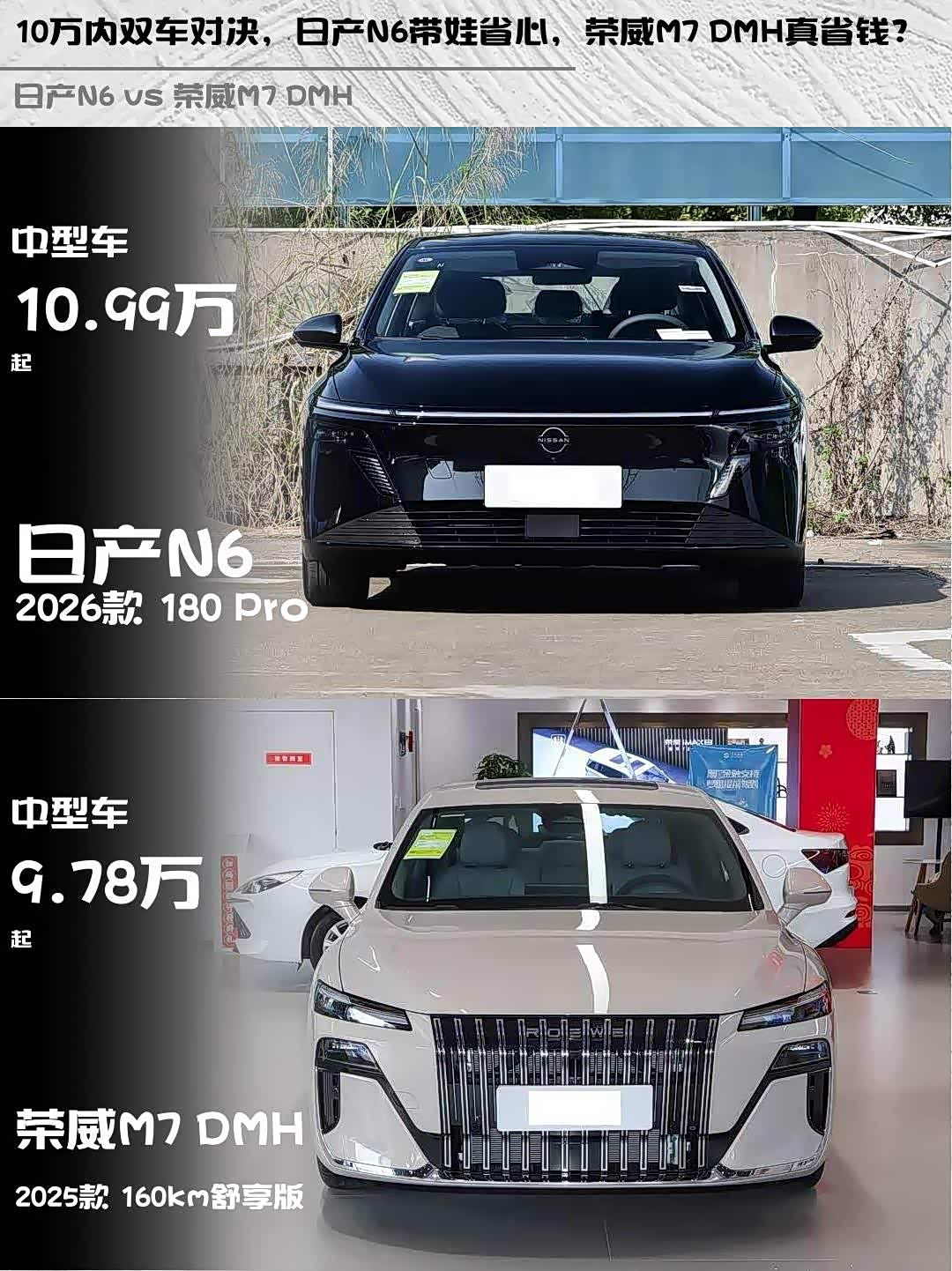 最近在选家用插混轿车的小伙伴看过来!今天深度对比两款热门车型——日产N6 2026款 180 Pro和 荣威M7 DMH(参数|询价) 2025款 160km舒享版,帮你理清思路👇
