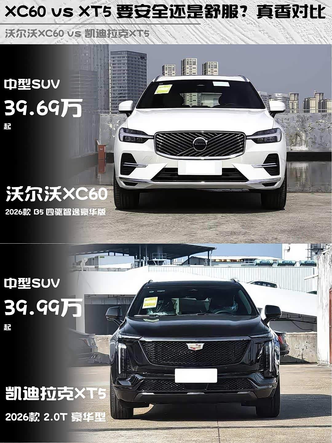 最近在纠结 沃尔沃XC60(参数|询价) 2026款 B5四驱智逸豪华版和凯迪拉克XT5 2026款 2.0T豪华型的朋友看过来!深度对比这两台40万级豪华SUV,看完你就知道哪台更适合自己了✨
