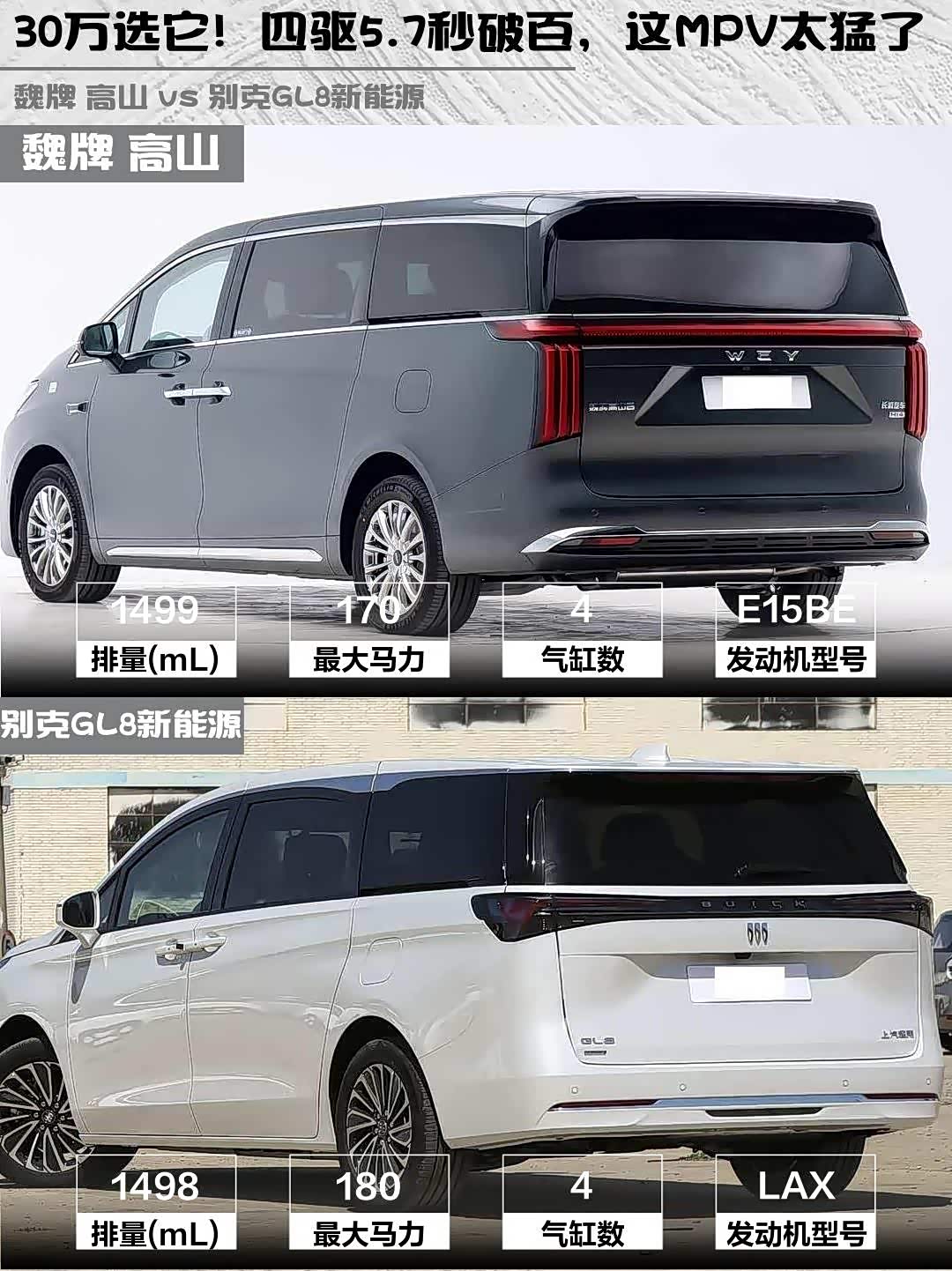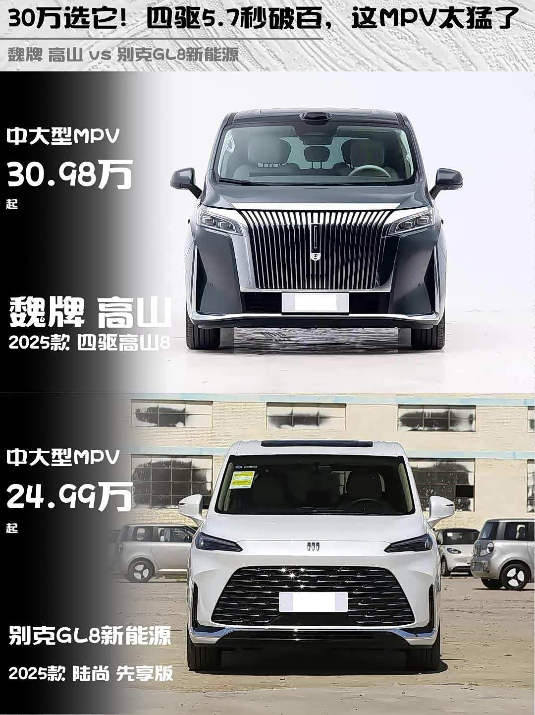 最近在选家用MPV的朋友看过来!今天深度体验了魏牌 高山 2025款 四驱高山8和 别克GL8新能源(参数|询价) 2025款 陆尚 先享版,两款都是30万级的热门选手,但性格差异超大!🚗💨