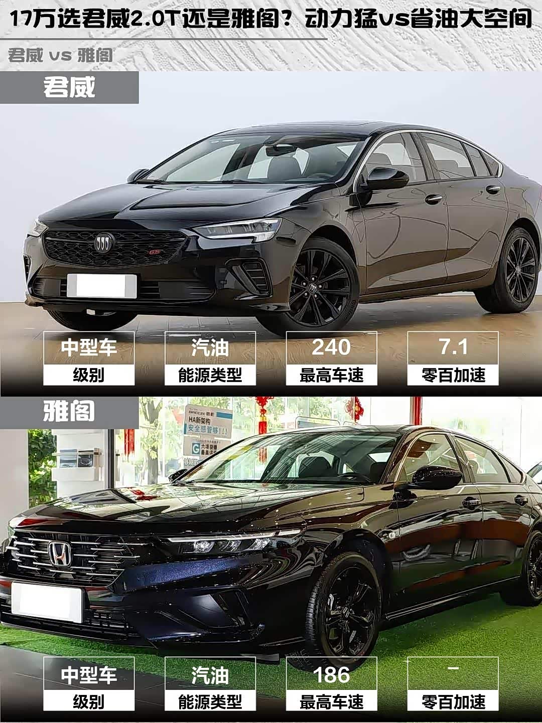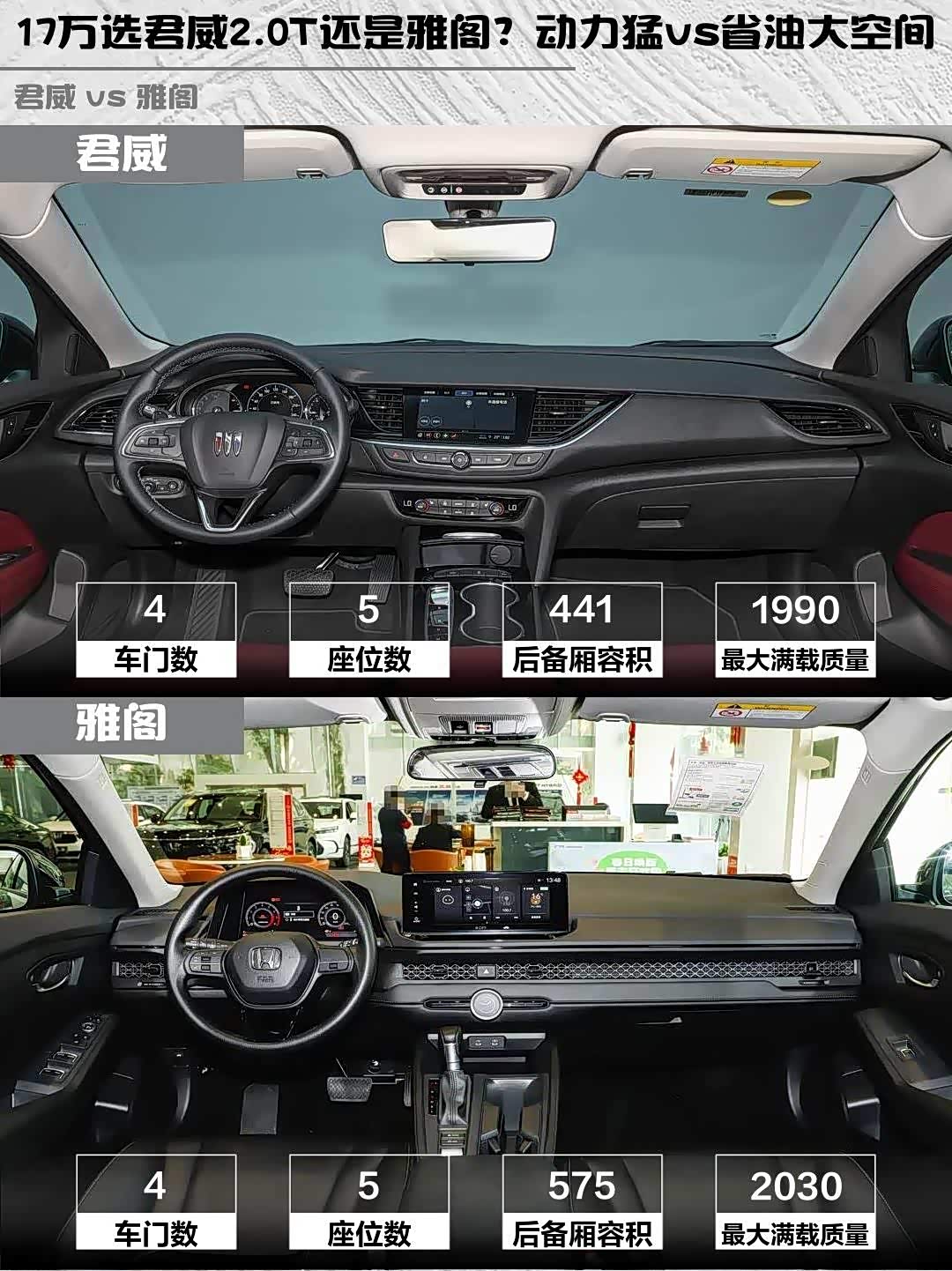 17万选君威2.0T还是雅阁?动力猛vs省油大空间