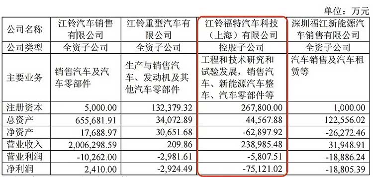 而作为江铃汽一块难以遮掩的业绩伤疤,江铃福特汽车科技(上海)有限公司全年净亏损7.51亿元,期末净资产跌至-6.29亿元,正式陷入资不抵债。