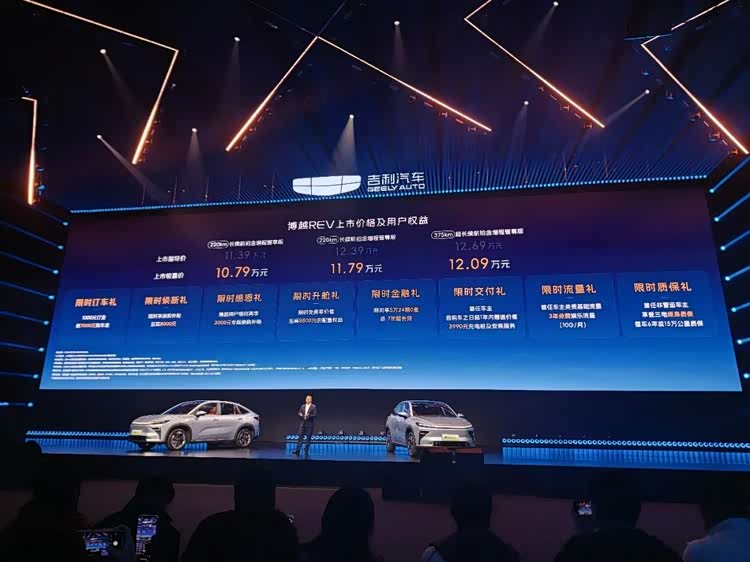 日前,吉利在十周年用户盛典暨全新产品发布会上正式推出吉利博越REV,3款配置的上市惊喜价为10.79-12.09万元。这款紧凑型增程SUV延续博越家族风格,前脸采用1.1米贯穿式LED灯组,尾部是1.6米的流光贯穿尾灯,搭配溜背造型与1.5㎡全景天幕。