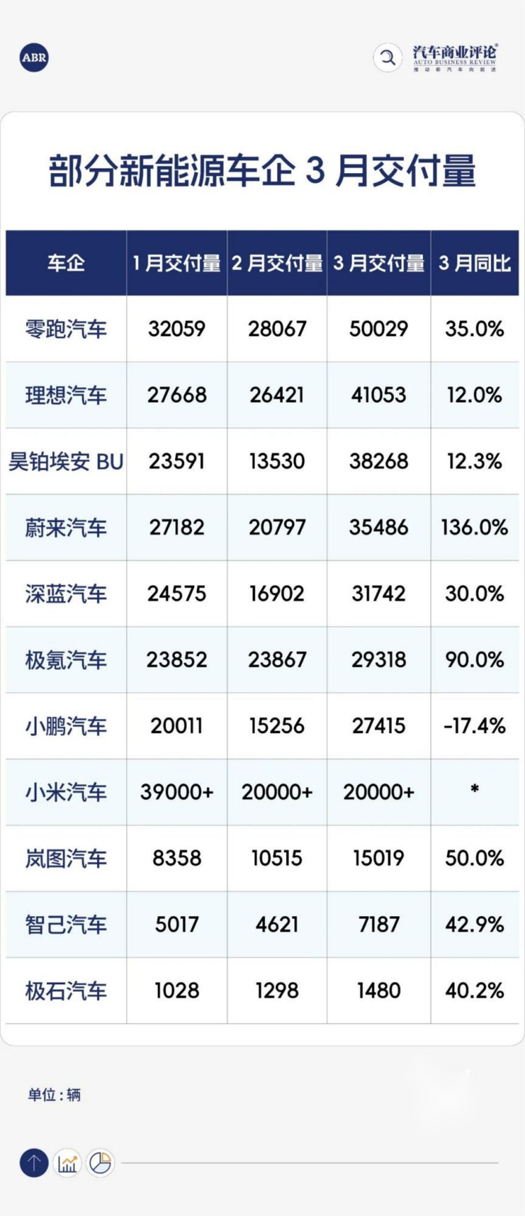 在已经披露的新势力车企中,仅有两家3月销量同比下滑,分别是小米和小鹏。其中,小鹏3月同比下滑17.4%。另外,小米去年3月销量超2.9万辆,今年3月仅为2万辆,同比下滑明显。