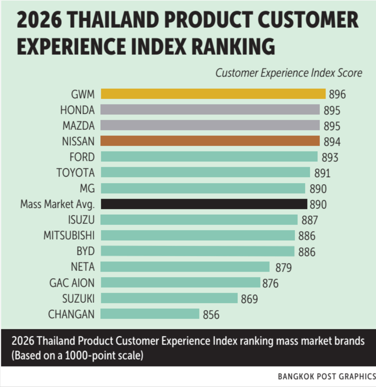 当全球车坛还在为“全面电动化”喊口号时,泰国市场却给出了一个相当现实的答案:理想很丰满,但日常用车体验,还是传统动力更香。根据泰国Differential (Thailand) Ltd发布的2026年CXI调查,这项涵盖超过2600名车主、14个主流品牌的研究显示,燃油车与混合动力车型依然在整体满意度上领先纯电动车。