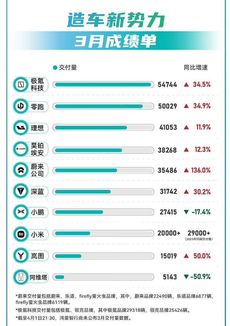 3月销量再洗牌!理想重回4万辆,阿维塔竟同比暴跌50%!