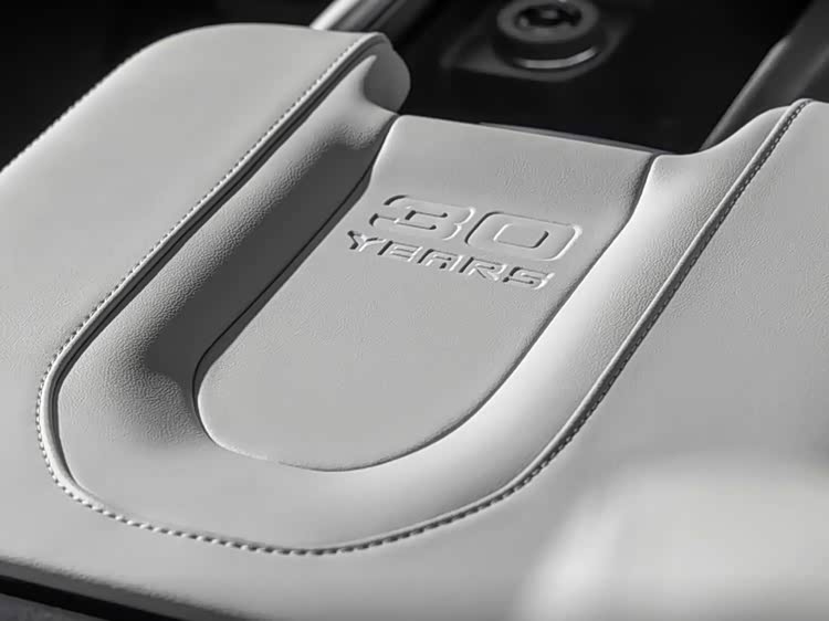 内饰方面,新车以豪华舒适为核心,采用Salt Crystal Gray(盐晶灰)主题内饰,与常规版的深色内饰形成鲜明区别,营造出细腻现代的座舱氛围。座舱大面积采用真皮材质包裹,座椅、中控台、门板等部位均配备灰色真皮与黑色对比缝线,细节之处尽显匠心,中央扶手盖板和门槛踏板上均嵌入“30 Years”专属标识,与外观呼应,进一步强化其纪念意义。