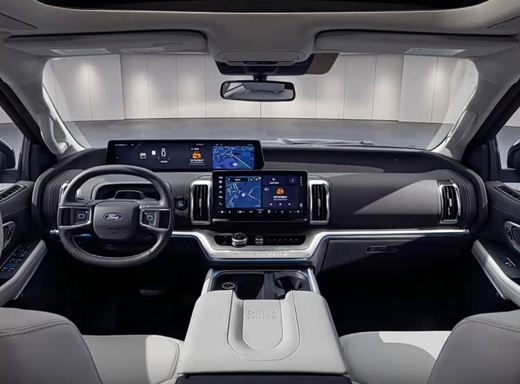 配置方面,新车延续家族高端配置水准,主驾前方配备24英寸全液晶仪表,搭配悬浮式中控屏,组成双联屏交互系统,搭载福特最新的智能车机系统,支持语音控制、手机互联、OTA升级等功能,操作流畅便捷。同时配备全景天窗、分区自动空调、无线充电、Bose高端音响系统等舒适配置,安全配置上,搭载全景影像、自动紧急制动、车道保持辅助等功能,全方位守护驾乘安全。