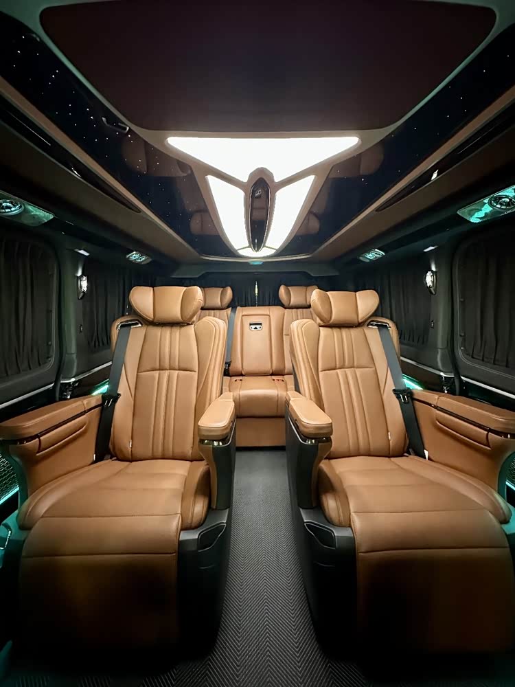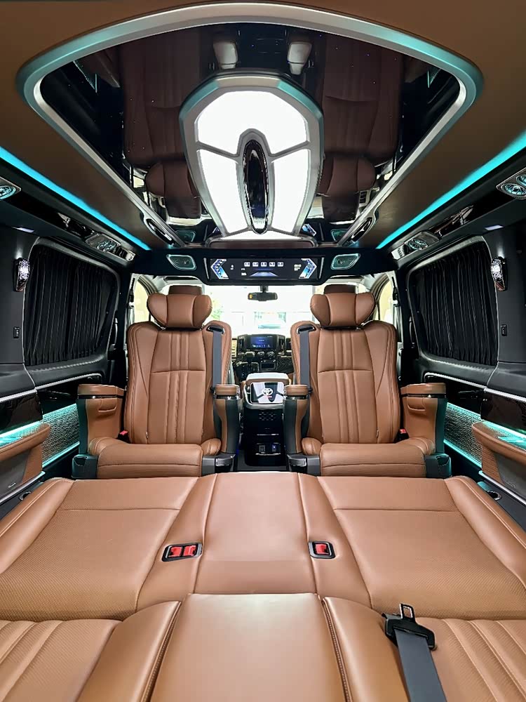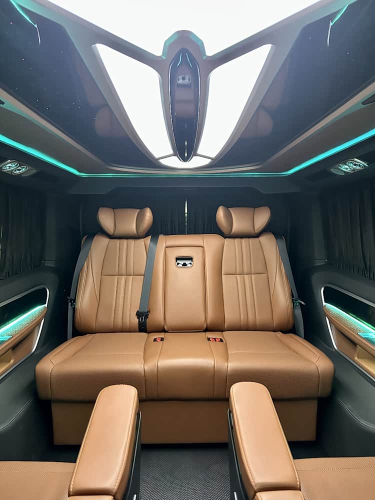 内饰主打活力橙色,Nappa打孔真皮全覆盖座椅、门板与中控台,搭配麂皮绒顶棚、实木饰条与多色氛围灯,暖调橙色喜庆又高级,告别商务车沉闷,春节氛围拉满。全车隔音升级、柚木游艇地板、隐私窗帘、分区独立空调,从触感、视觉到体感,全方位对标豪华MPV。