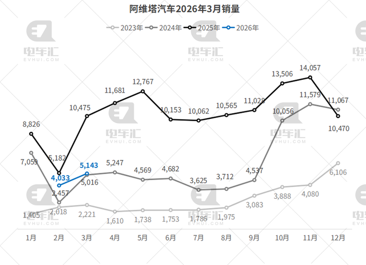 阿维塔汽车3月销量5,143辆,环比增长27.5%,同比下降50.9%。尽管销量承压,企业动作密集:3月4日,阿维塔07在泰国开启大规模交付;3月20日,发布“太行智控2.0”智能底盘平台,强调极限场景下的安全与操控性能;3月下旬,阿维塔06全球首次挑战E-NCAP 2026新版安全测试标准,并高分通过50%重叠率对碰试验,展现其面向欧洲市场的安全设计能力。