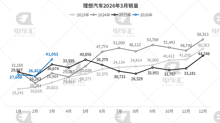 理想汽车3月交付41,053辆,环比增长55.4%,同比增长11.9%;1-3月累计95,142辆,同比增长2.5%。全新一代理想L9及L9 Livis版将于二季度上市,搭载自研马赫100芯片、全球首个量产全线控底盘和800V全主动悬架。截至3月底,理想在全国拥有517家零售中心、552家售后及授权服务中心,并已投用4,057座超充站,充电桩总数达22,439个。