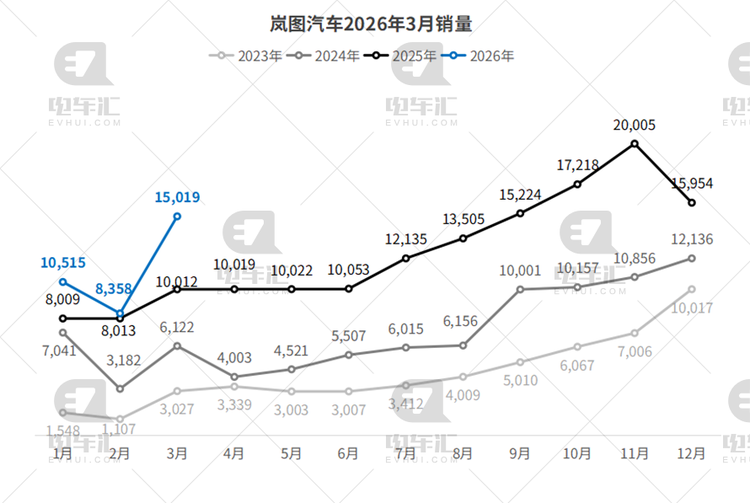岚图汽车3月交付15,019辆,环比增长79.7%,同比增长50.0%。3月10日,岚图梦想家达成20万辆下线,并联合华为推出冠军版车型;3月17日,岚图泰山Ultra正式量产交付,“黑武士”版本同步上市;3月19日,岚图泰山X8全球首发,将于4月下旬开启预售。